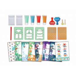 - Comprend quatre tubes de peinture de 60 ml de différentes couleurs, cinq pochoirs A4, deux rouleaux de peinture, deux éponges rondes sur bâtonnet et 6 activités.
