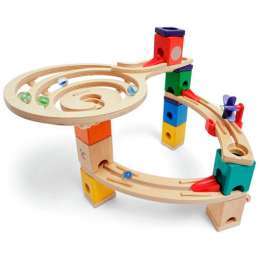 Découvrez les pistes de billes amusantes de la collection Quadrilla de Hape.