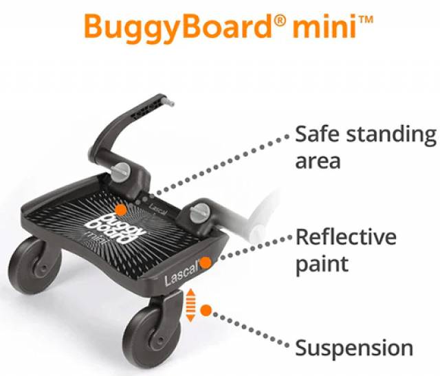 - Le BuggyBoard Mini 3D de Lascal est facile à installer et à utiliser, grâce à son système de connexion Easy-fit, il s'adapte à presque toutes les poussettes et landaus.